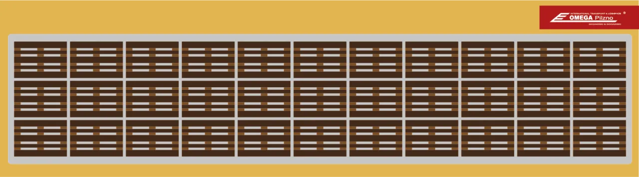 Na tak przygotowanej przestrzeni ładunkowej możemy efektywnie zmieścić 34 europalety (1200x800 mm). Schemat rozmieszczenia jest zazwyczaj następujący: w jednym rzędzie, wzdłuż naczepy, układamy 17 palet, a w drugim, równoległym rzędzie, również 17 palet. Taki układ maksymalizuje wykorzystanie dostępnej długości i szerokości podłogi. To właśnie ten układ jest często wizualizowany na schematach załadunku, aby ułatwić kierowcom i spedytorom planowanie.